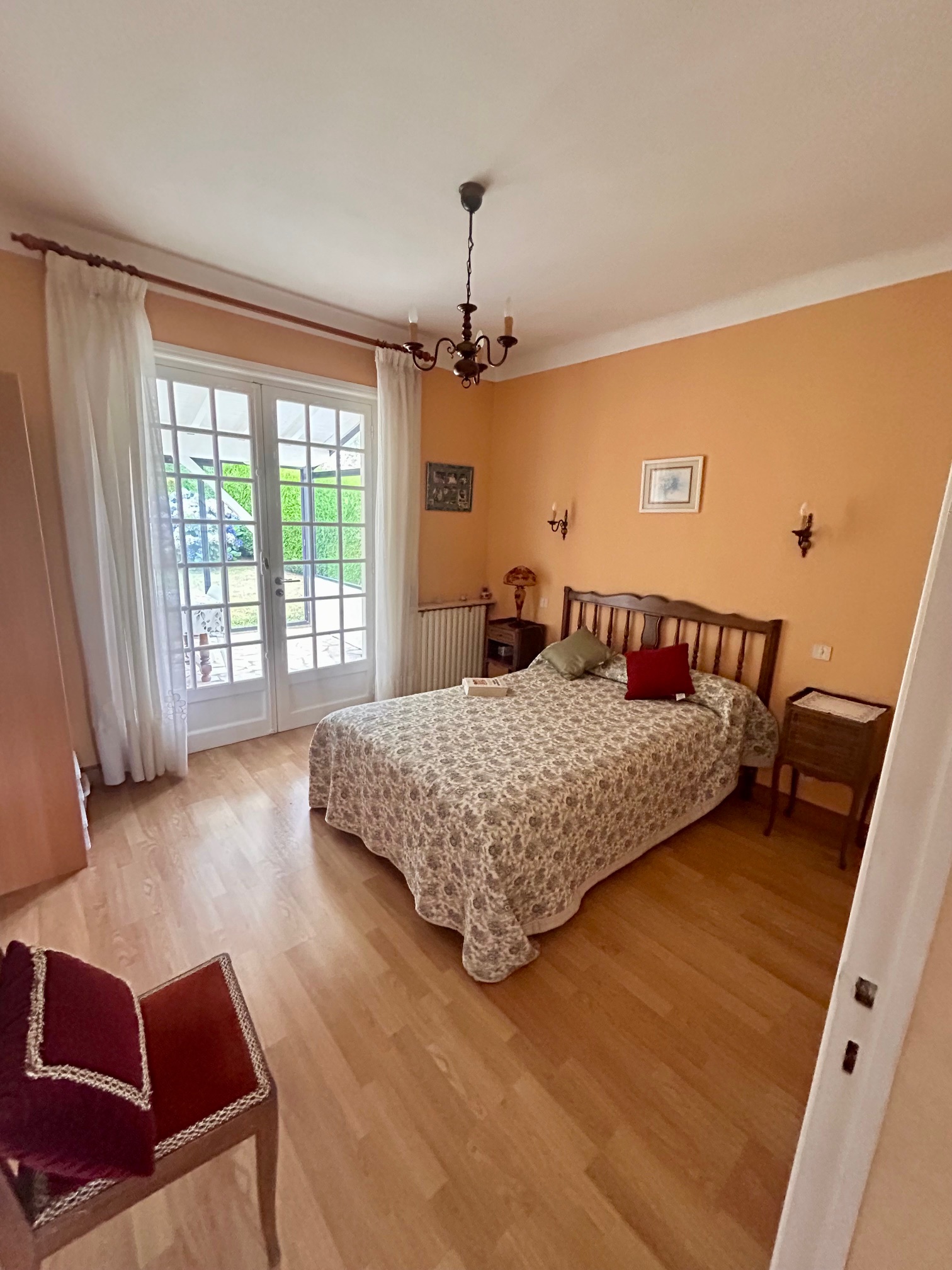 Au rez de chaussée, grand garage, appartement composé d’un grand sejour avec deux chambres, salle d’eau et wc avec accès sur le jardin ; à l’étage, grande cuisine équipée séparée, 3 chambres, salle de bains, wc, et séjour sur véranda. 2 chambres donnent également sur la véranda lumineuse et spacieuse, ainsi que le jardin.